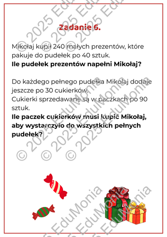 • rodzicach, którzy chcą przekazać dziecku dodatkowe, świąteczne ćwiczenia matematyczne.