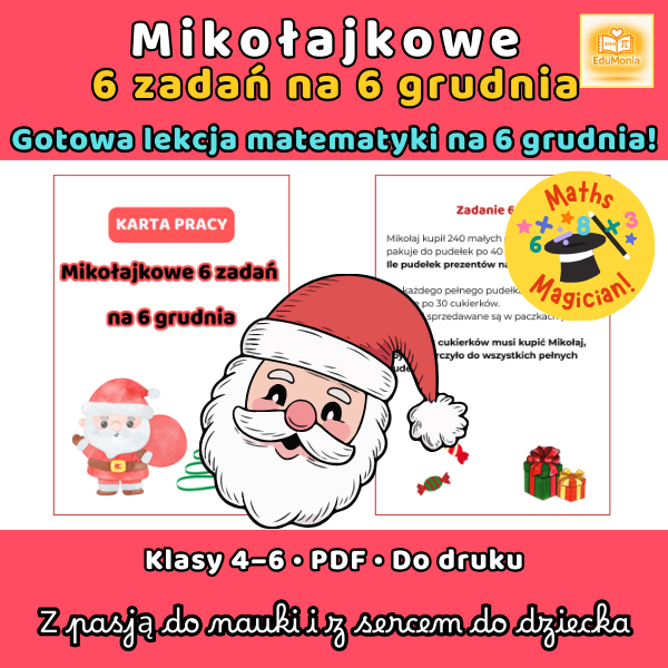 ✔ karta pracy „Mikołajkowe 6 zadań” – estetyczne, świąteczne, idealne na 6 grudnia.